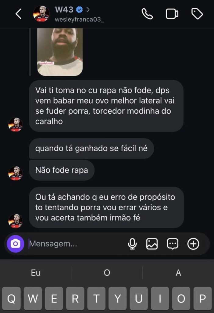 Em meio a esse ambiente, o jogador Wesley respondeu com ofensas e xingamentos a uma postagem realizada na rede social por um torcedor. Mais tarde, o jogador se pronunciou pedindo desculpas pela forma que reagiu.